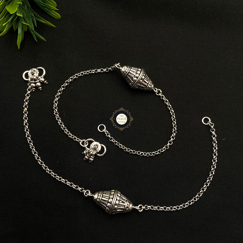 Adorn your ankle with the exquisite charm of our 925 Sterling Silver Dholki Anklet. Featuring intricately designed dholki-shaped beads, the anklet showcases a unique blend of traditional craftsmanship and contemporary elegance.