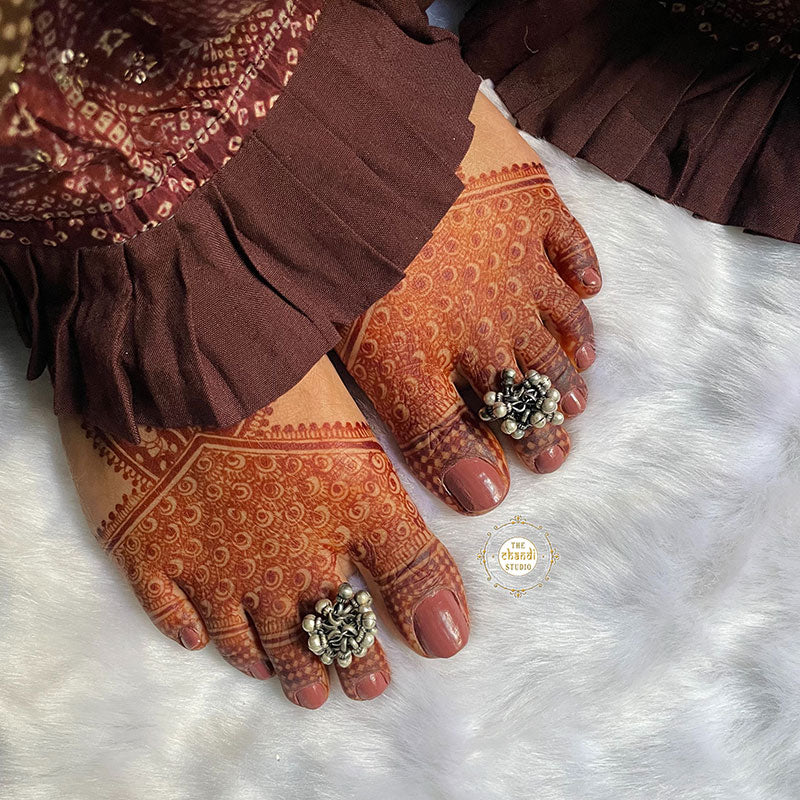 Make the little things count with our Ball Bunch Dual Toe Ring adjustable toe ring. Suspended with bunches of playful ghungroos, this adjustable tribal beauty can be worn on both, the hands as well as the feet.