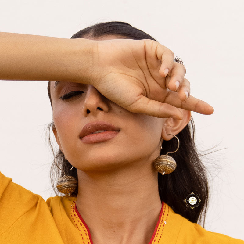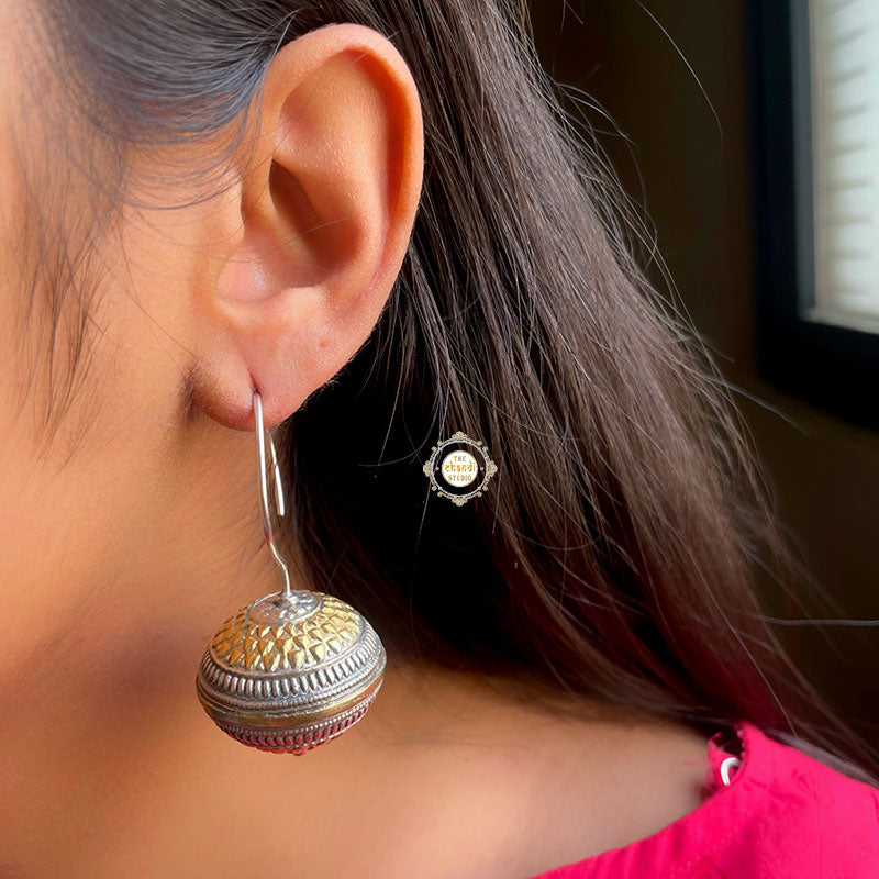 Ball Drop Earring Dual Tone   Amaze your most loved one standing and looking into the mirror with your stunning and flawless personality. Ball drop earrings will modify your image into a mesmerizing beauty who has just discovered how to fill the crevices of her bruised self with love. Blend elegance, minimalism and simplicity with this go-to pair of studs which will instantly add up to your overall look. MATERIAL : STERLING SILVER 92.5