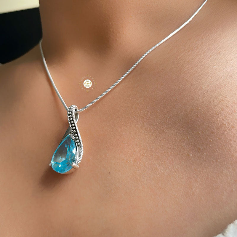 A Blue Topaz Pendant can be a stunning addition to any jewelry collection. Adorn yourself with the timeless elegance of our Blue Topaz Pendant. * MATERIAL : STERLING SILVER 92.5 * Price mentioned only for pendant
