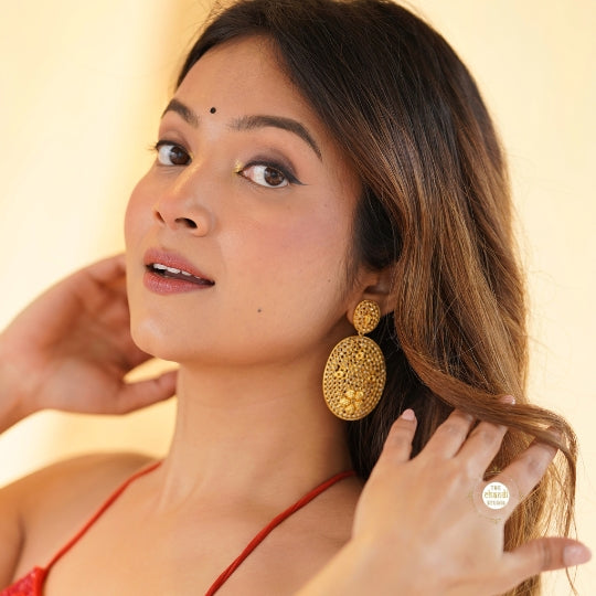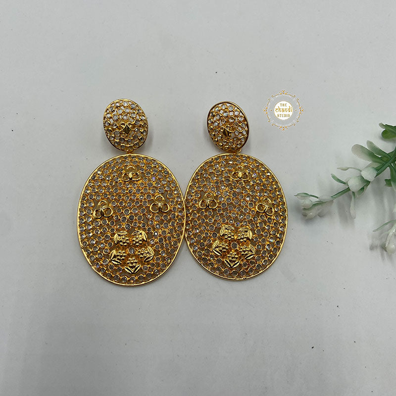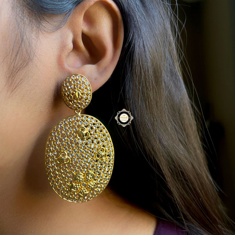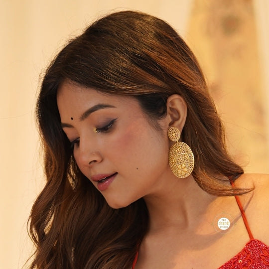 Bold and Bling earring in full gold can add a touch of elegance and glamour to any outfit. They can be styled in a variety of ways, depending on the occasion and the desired look. For a formal event, a pair of full gold Bold and Bling earrings can be paired with an elegant evening gown or a formal dress. The earrings can also be paired with a simple outfit such as a little black dress for a more understated, yet still glamorous look. You can also mix and match the earrings with other jewelry such as a gold necklace, bracelets and rings. This can help to create a cohesive look and can help to accentuate the earrings. This will add a touch of sparkle and glamour. Overall, full gold Bold & Bling earrings are versatile and can be dressed up or down depending on the occasion and the desired look. Material – Sterling Silver 92.5%