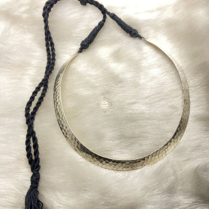 The Hammered Hasli Necklace is a stunning neckpiece that combines traditional elegance with contemporary design. Crafted with precision, its intricate hammered texture exude regal charm. This statement piece, featuring a sturdy hasli design, beautifully complements ethnic attire, making it an exquisite accessory for special occasions.