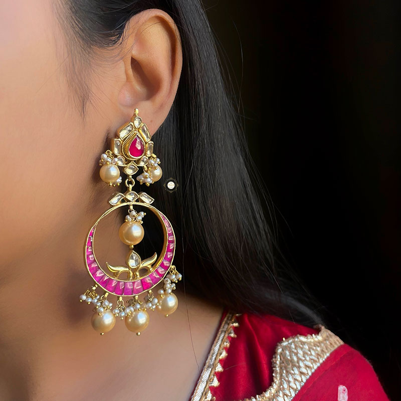 From ancient times to the modern era, Chaandbalis have always been acquired in securing a special room in the culture as well as in every woman’s jewelry box. Chaandbali Full Gold Earring from our studio is one such artistic pair of stunning earrings that is sure to turn heads!! Wear this luxurious piece with a lehenga choli to complete your traditional look. You can also glamorize the look by pairing concurrently these pair of chaandbali with your Indian Dresses. Material : Sterling Silver 92.5%