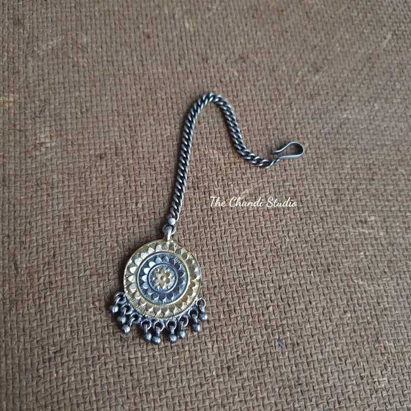 Made in sterling silver 92.5, this maang tika is an extra-ordinary piece.Have it in pure silver polish, dual tone or dipped in full gold, this piece will be a head turner for sure.
