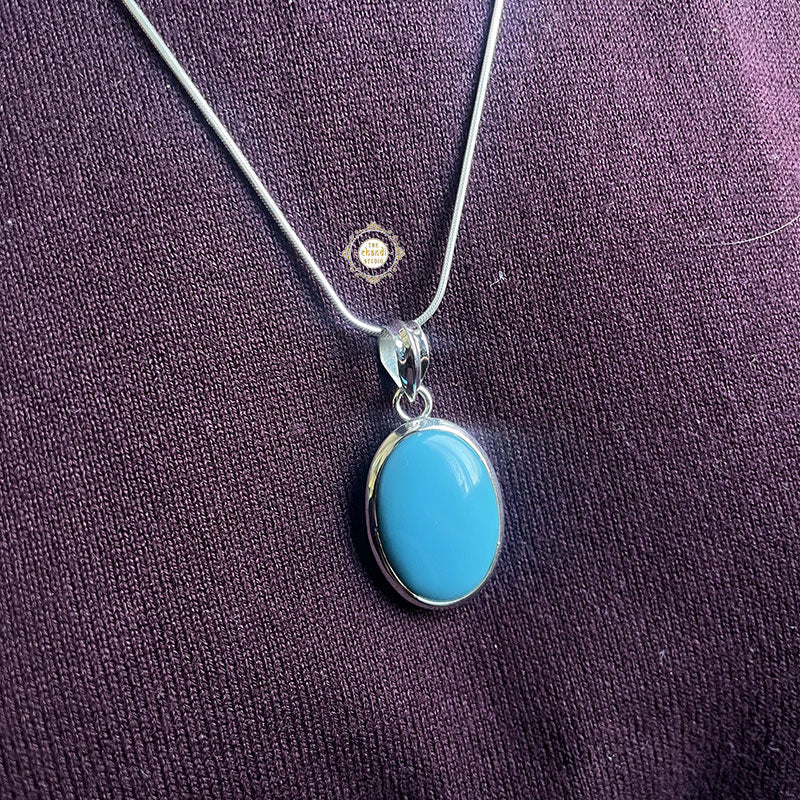 Your hunt for gorgeous silver stone pendant ends here. Turquoise is a blue-green mineral that has been used in jewellery and other decorative items for thousands of years. Classic turquoise stone pendants are made from natural, untreated turquoise and set in sterling silver. They are popular for their beauty and cultural significance. MATERIAL – STERLING SILVER 92.5