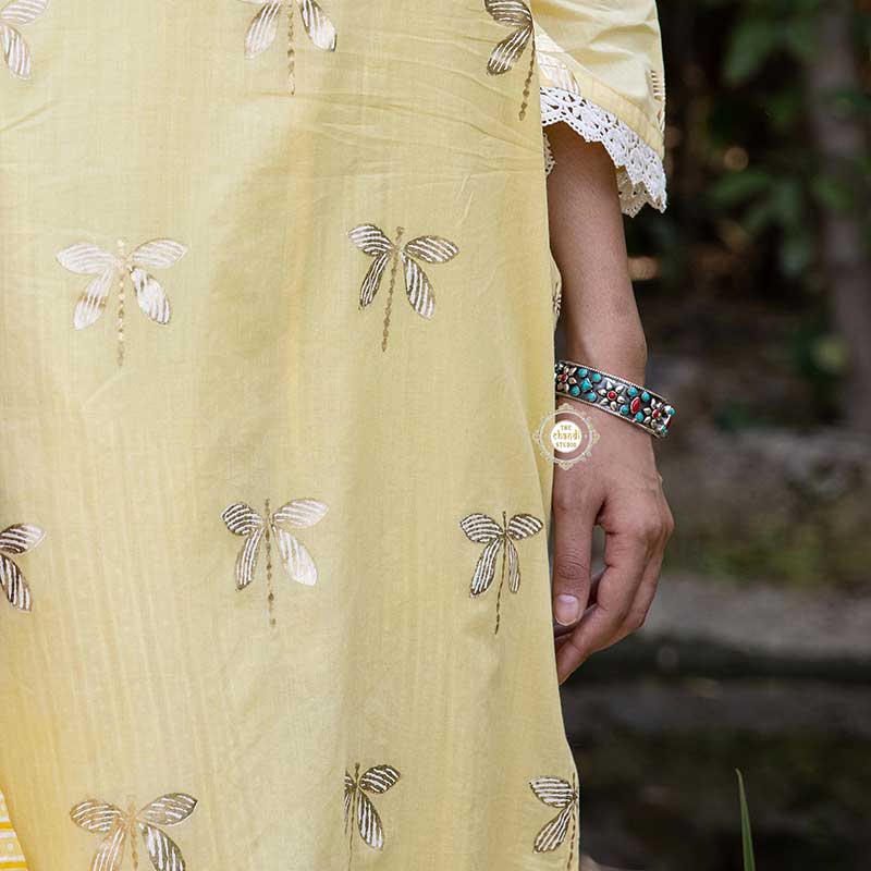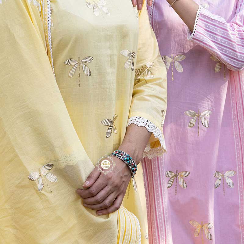 This bangle is so vibrant! The turquoise and coral colors are stunning together.