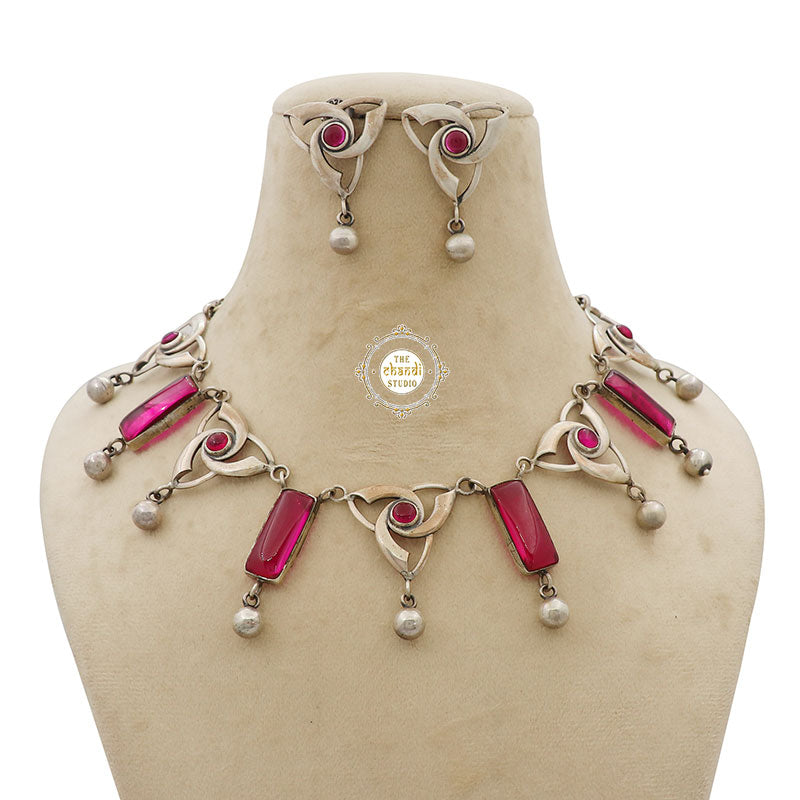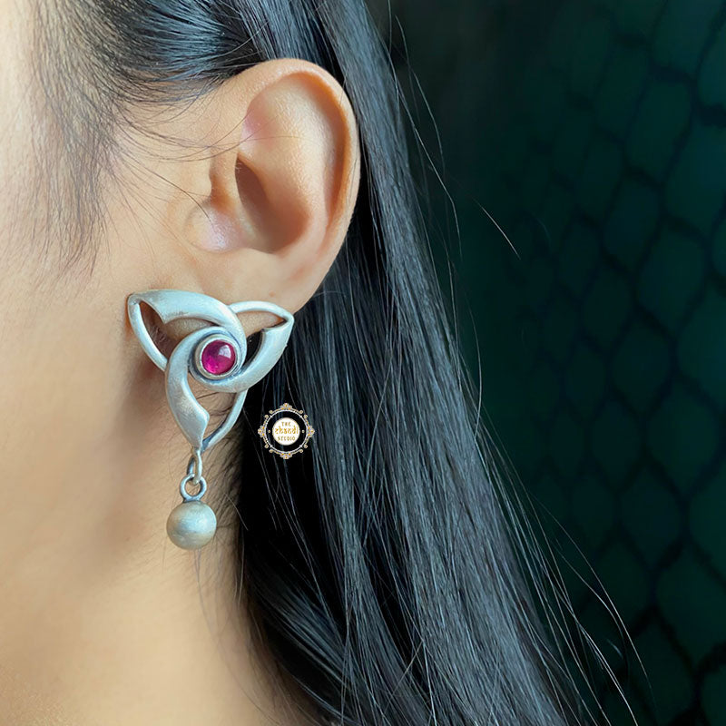 To all the Marvel fans out there!! Bringing you one of the most stylish pieces of jewelry inspired by the Viking Age and the popular image from Thor's hammer, the famous Valknut symbol that represents strength, power, warriors, and fearlessness in Norse mythology which is a forever favorite and trending everywhere. The 'Dramatic Valknut Ruby Ball Drop Necklace Set' is crafted with intricacy and is embellished with ruby and rava balls and is lightweight and comfortable to wear day and night to add a little oomph to any outfit in daily life. A perfect gift to convey endless love and a wish of longevity to yourself or your family and friends on birthdays, anniversaries, or Valentine's Day. MATERIAL : STERLING SILVER 92.5