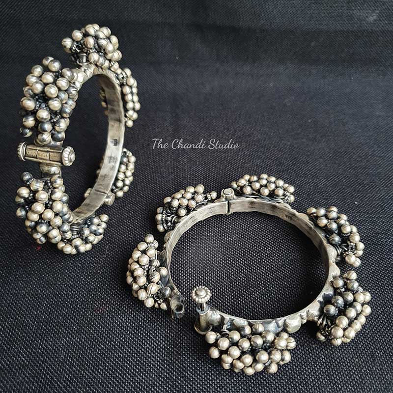 Dreamy Vintage Ghungroo Bunch Kada Rustic & vibrant, this tribal ghungroo kada is a stunner! Feel all dreamy & vintage in this Screw Kada. The size in this openable bangle  can easily fit one size above.