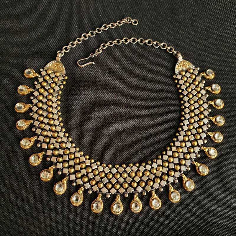 Dual Tone Glass Drop Necklace features glass drops which is a fashionable and elegant piece of jewelry. It can be worn to dress up or dress down an outfit, depending on the occasion. It is perfect for parties, functions, festivals and events. And some pieces just have our heart! With simple chatai work & glass work drops, this Sterling Silver piece has turned out to be so pretty 🌸 MATERIAL : STERLING SILVER 92.5