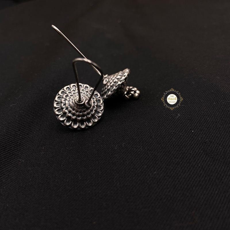Invest in these Embossed Ghungroo Hoop Earrings and experience the perfect harmony of tradition and contemporary style. Elevate your fashion game and let your inner bohemian spirit shine with this stunning accessory. Shop now and indulge in the ultimate fashion statement that will turn heads wherever you go. These earrings also make a thoughtful gift for a loved one. Whether it's a birthday, anniversary, or any special occasion, presenting these earrings is sure to impress and leave a lasting impression. MATERIAL : STERLING SILVER 92.5 Length= 5cm