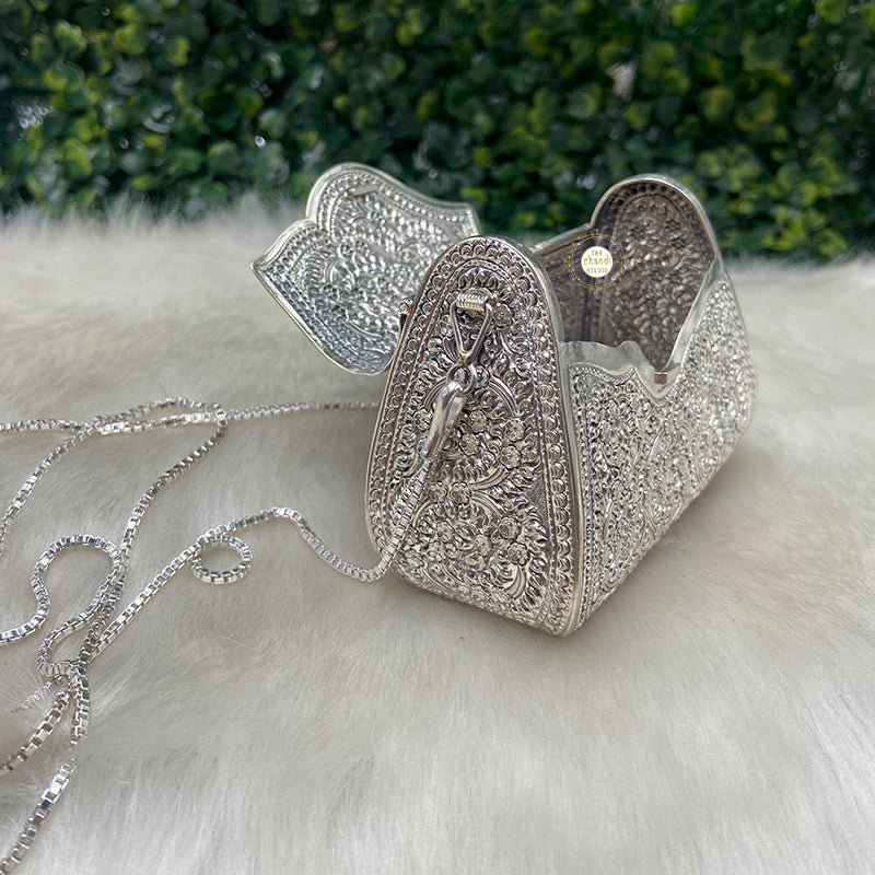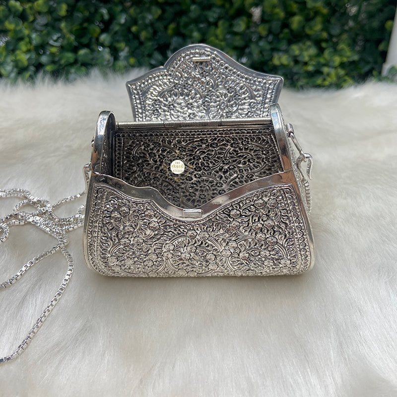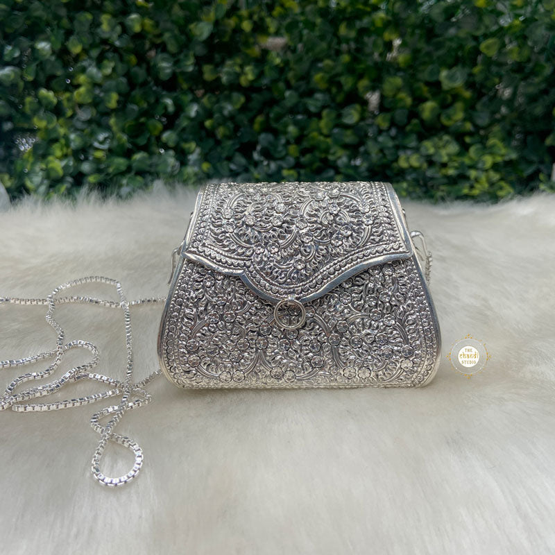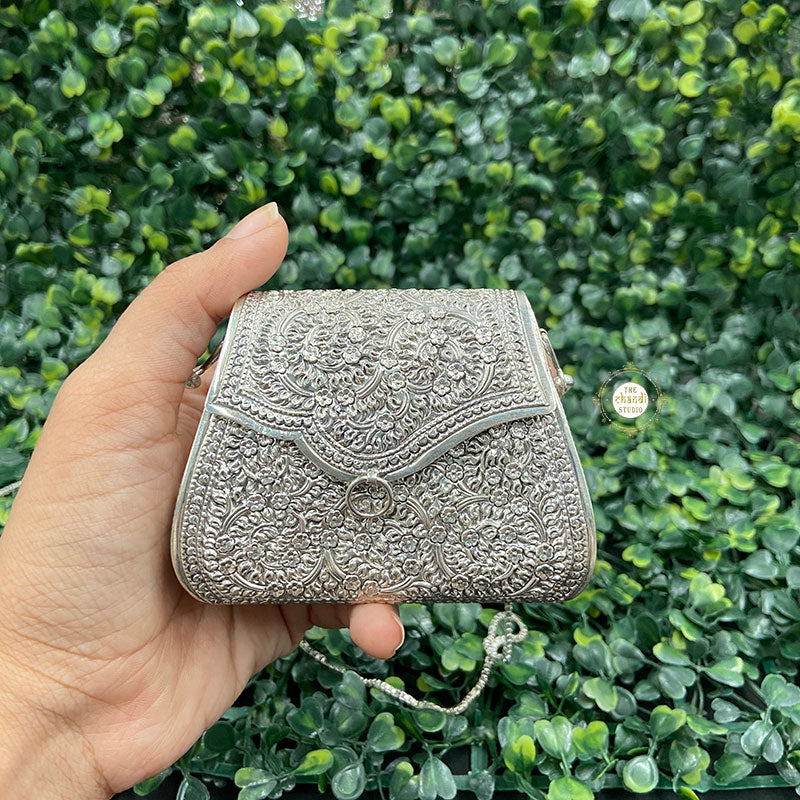 Discover timeless elegance with our Enchanting Silver Purse. Crafted with precision and adorned with intricate details, this purse is the perfect blend of style and sophistication. Elevate your look and make a statement with this captivating accessory.