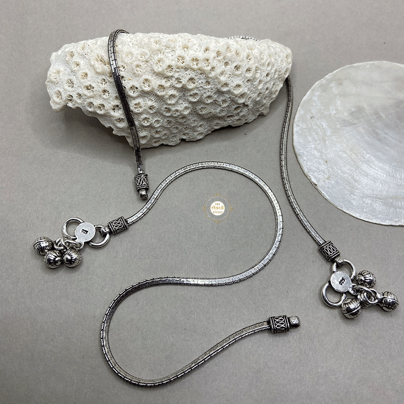 Everyday Chain Anklet Pair A very simple everyday wear anklet; a great choice for a minimalist. The texture and the pattern on the anklet feel so beautiful against the skin, that this one will soon become your favorite pair. LENGTH : 10.5 inches * Price mentioned is for a Pair. * Material – Sterling Silver 925