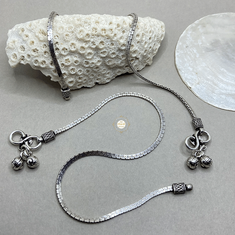 Everyday Chain Anklet Pair A very simple everyday wear anklet; a great choice for a minimalist. The texture and the pattern on the anklet feel so beautiful against the skin, that this one will soon become your favorite pair. Price mentioned is for a pair of anklets ( 2 pieces). LENGTH : 10.5 inches MATERIAL : STERLING SILVER 92.5