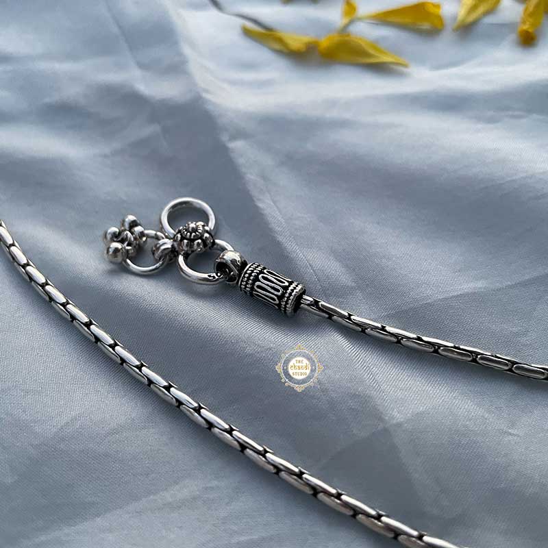 Everyday Chain Anklet A very simple everyday wear anklet; a great choice for a minimalist. The texture and the pattern on the anklet feel so beautiful against the skin, that this one will soon become your favorite pair. LENGTH : 10.5 inches * Price mentioned is for a Pair. * Material – Sterling Silver 925