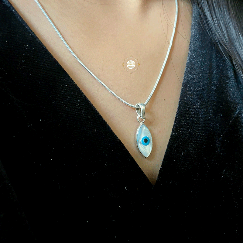 According to an old belief, the ancient people began wearing amulets or jewelry with the evil eye symbol to avoid any curse or misfortune. An illustration of fine craftsmanship, the Evil Eye Pendant is solely designed for the soul in love with themselves. Style this beauty with your regular outfits and add a tinge of style statement. * MATERIAL : STERLING SILVER 92.5 * Price mentioned only for pendant