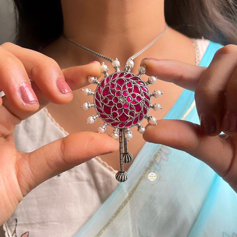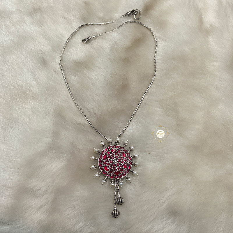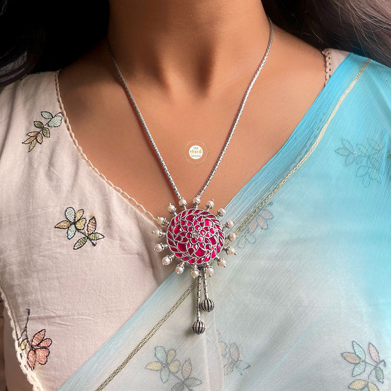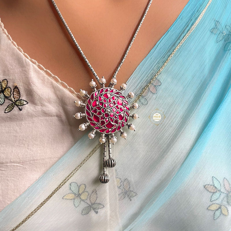 Indulge in timeless elegance with our Floral Kundan Chain Necklace. This exquisite piece showcases the artistry of Kundan jewelry, featuring intricate floral motifs adorned with hand-set Kundan gemstones. Crafted from premium 925 sterling silver, it effortlessly blends tradition with modernity, making it the perfect accessory for any occasion. Shop now and add a touch of opulence to your collection. MATERIAL : STERLING SILVER 92.5