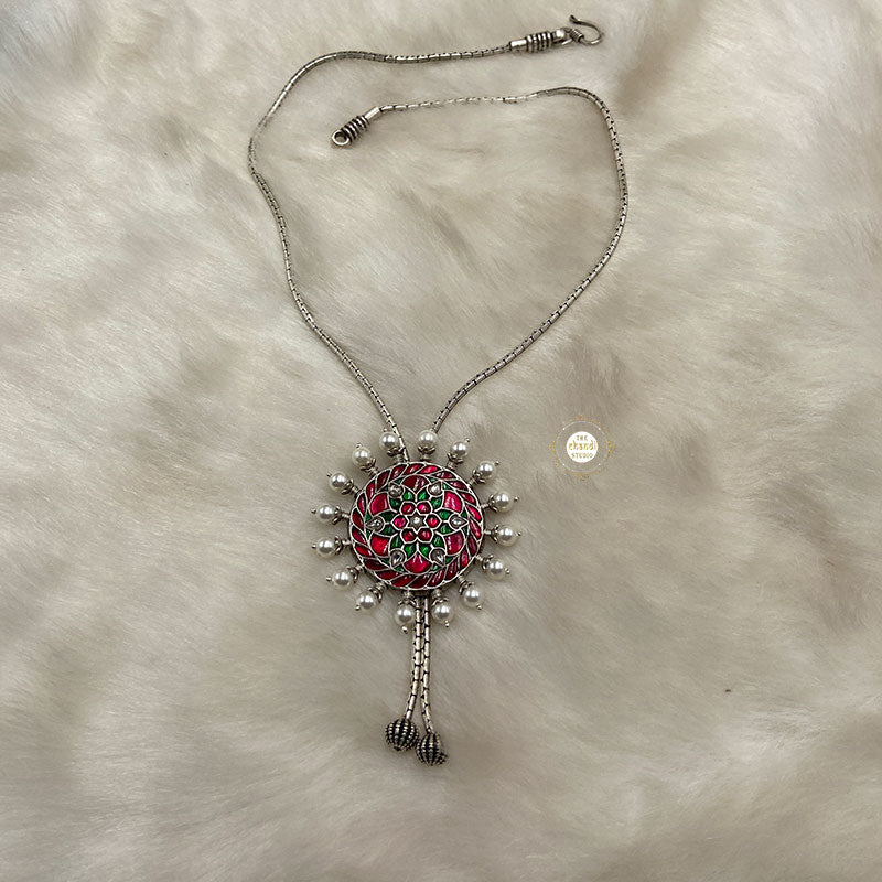 Indulge in timeless elegance with our Floral Kundan Chain Necklace. This exquisite piece showcases the artistry of Kundan jewelry, featuring intricate floral motifs adorned with hand-set Kundan gemstones. Crafted from premium 925 sterling silver, it effortlessly blends tradition with modernity, making it the perfect accessory for any occasion. Shop now and add a touch of opulence to your collection. MATERIAL : STERLING SILVER 92.5