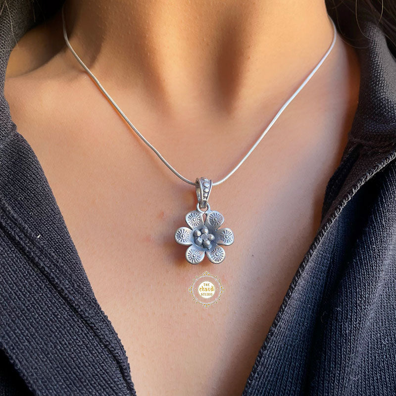 For the days when you want to keep it minimal yet look your best! This Floral Pendant is lightweight & convenient to wear from office meetings to go to a party in style. *Price mentioned is only for Pendant MATERIAL – STERLING SILVER 92.5