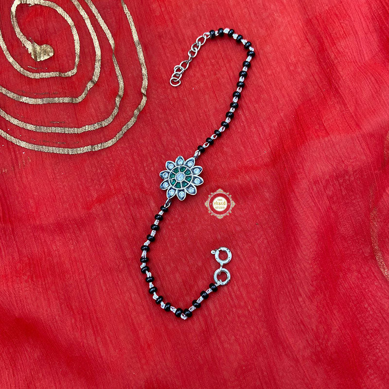 Floral Paradise Mangalsutra Bracelet   It’s trendy, it’s stylish & can be worn 24*7 – be it with office formals, traditional attires or parties!   MATERIAL – STERLING SILVER 92.5 Minimum Length – 7 inches Maximum Length – 7.5 inches