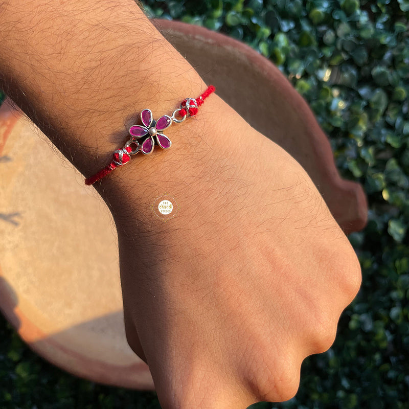 Celebrate the bond of love with the Sterling Silver Floral Grace Rakhi Handcrafted in 92.5 silver, it features an elegant design symbolizing purity, protection, and timeless sibling connection.