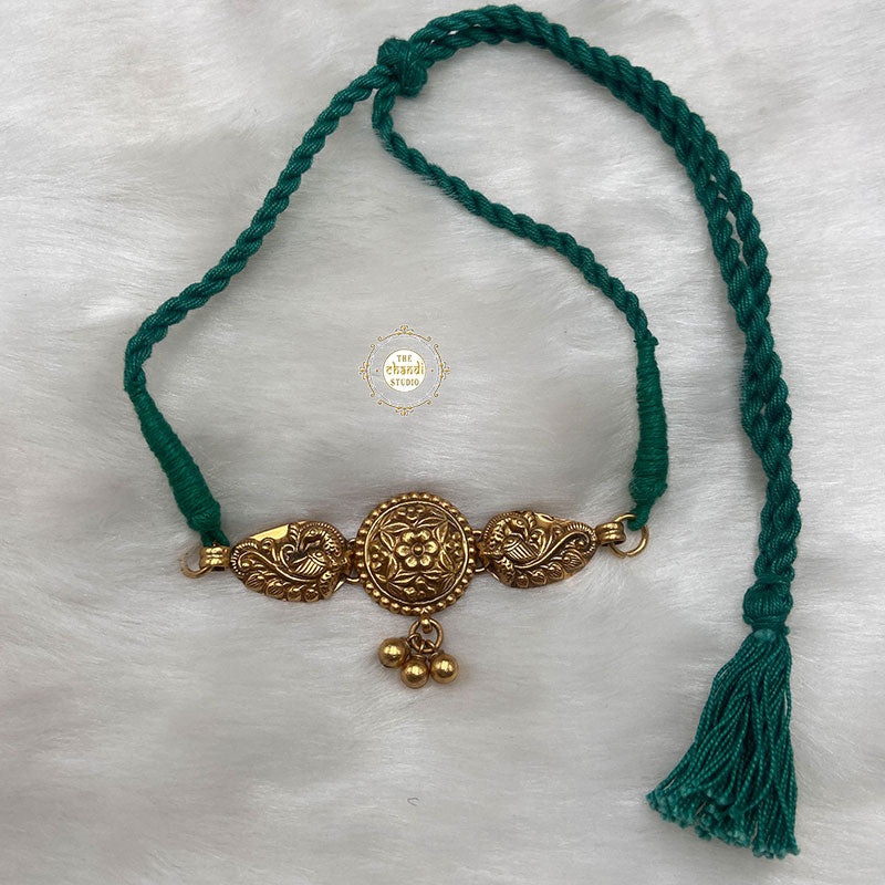 Full Gold Chakra Embossed Thread Choker   A simple everyday tribal piece, feels super light on the neck too. Finished with adjustable cotton thread, available in some beautiful colors to choose from.   * Material : Sterling Silver 92.5