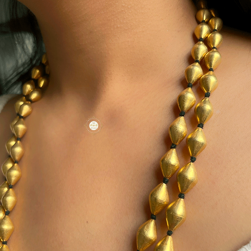 Elevate your style with the Full Gold Sadabhar Ball Thread Necklace. Featuring radiant gold-toned beads on a sleek thread design, this timeless piece is perfect for adding traditional elegance to any occasion