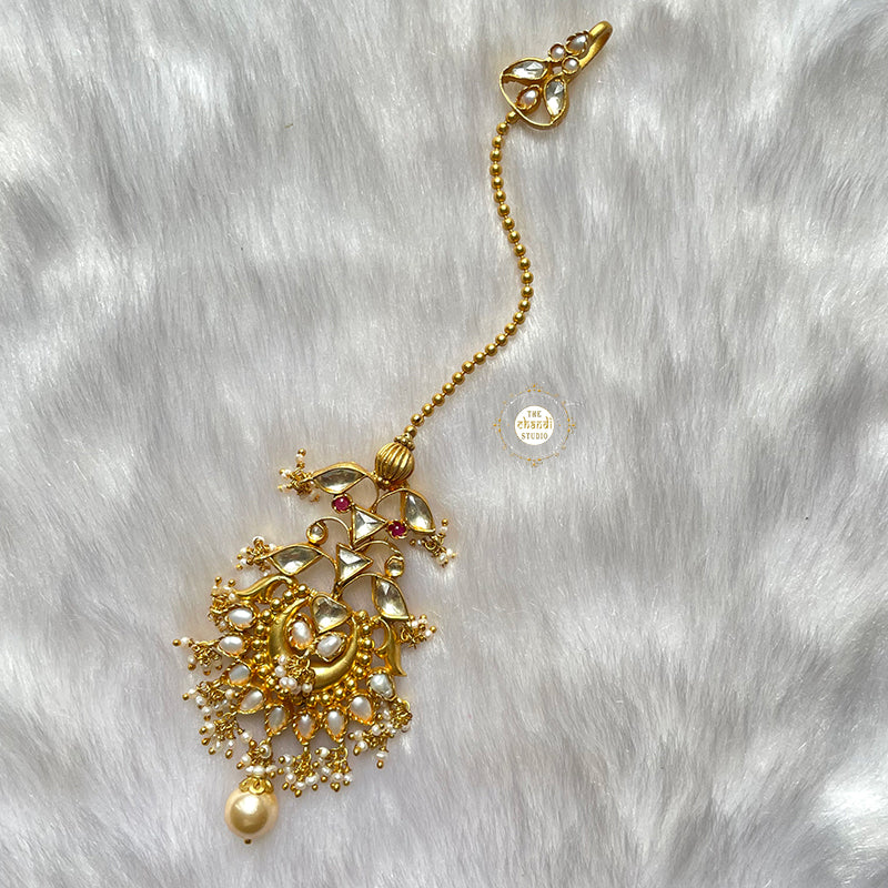 Embrace the essence of femininity and tradition with our Full Gold Shringaar Maangtika. Let its radiant beauty adorn you, elevating your confidence and leaving a lasting impression wherever you go. Make a statement of sophistication and grace with this exquisite accessory that celebrates the artistry of Indian craftsmanship.
