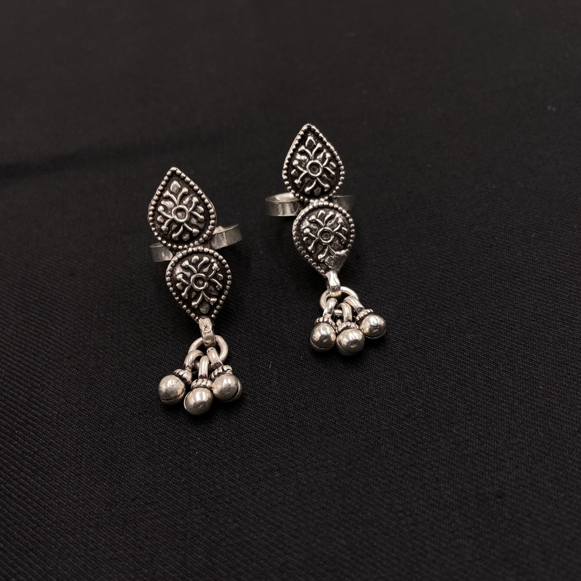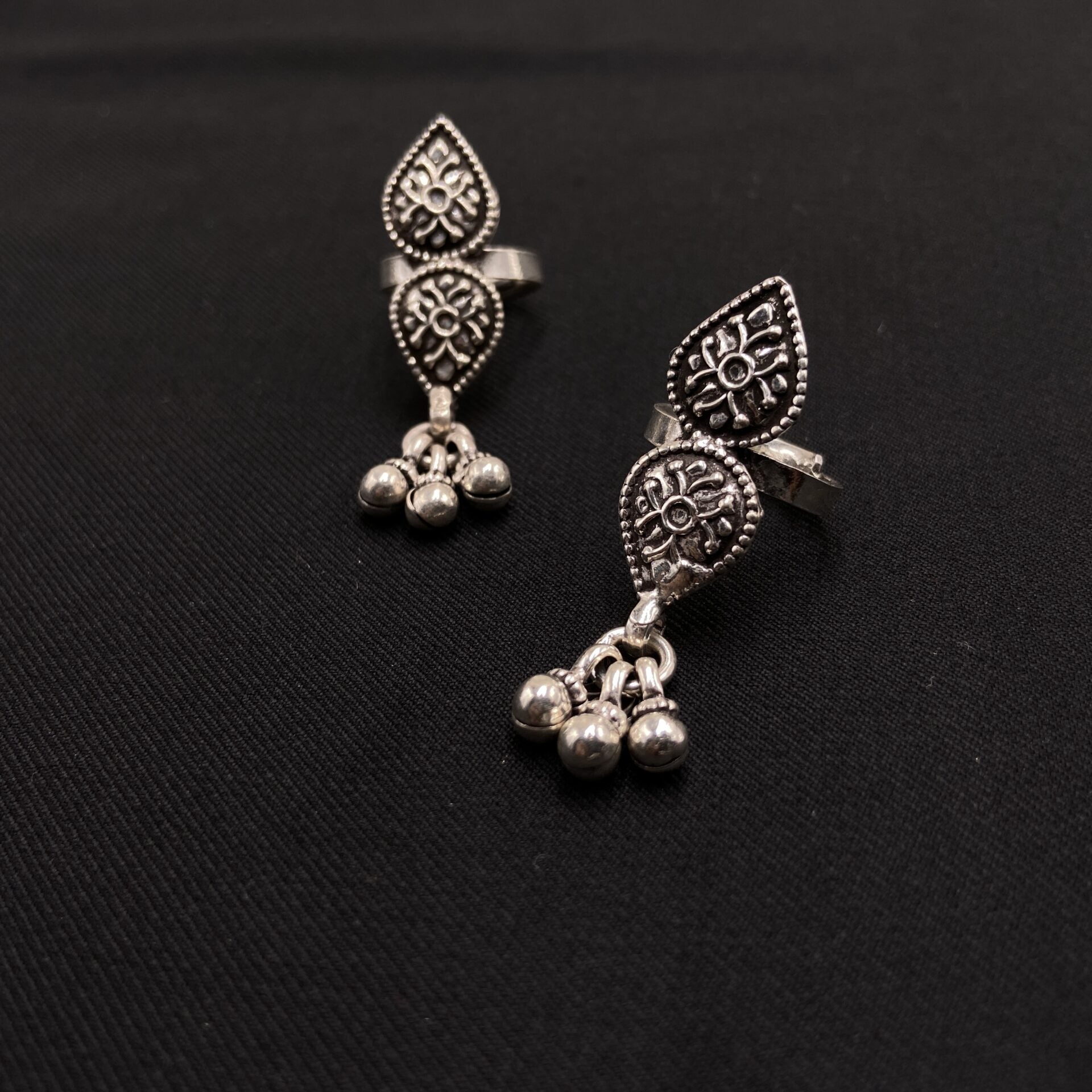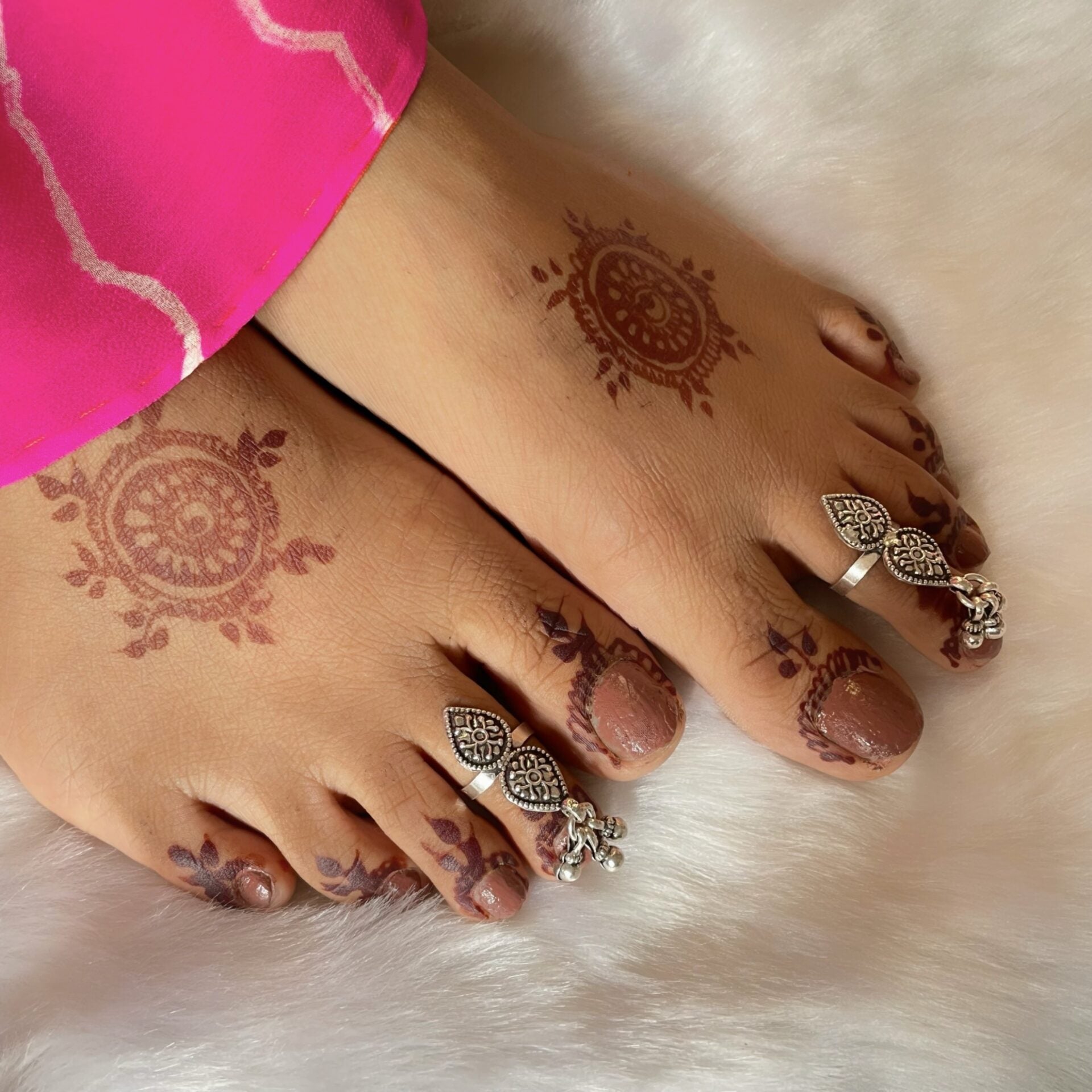 Elevate your feet with the captivating Ghungroo Toe Ring, adorned with small, melodious ghungroo bells. These toe rings, crafted with precision, add a touch of tradition and charm to your look. Perfect for enhancing your footwear style, they offer a unique and alluring accessory for any occasion. * Price mentioned is for a Pair.