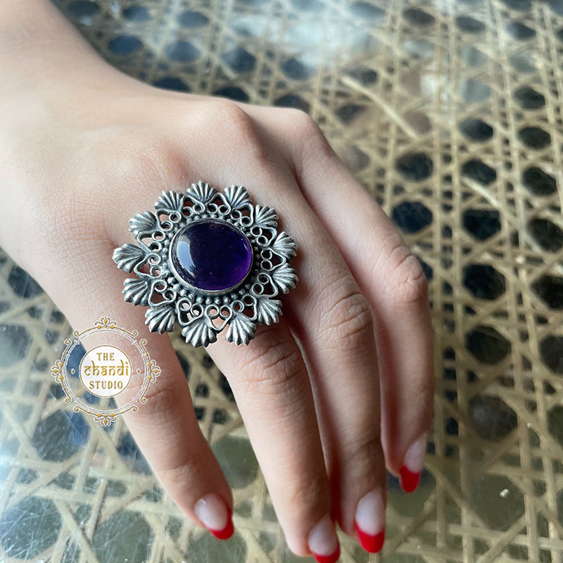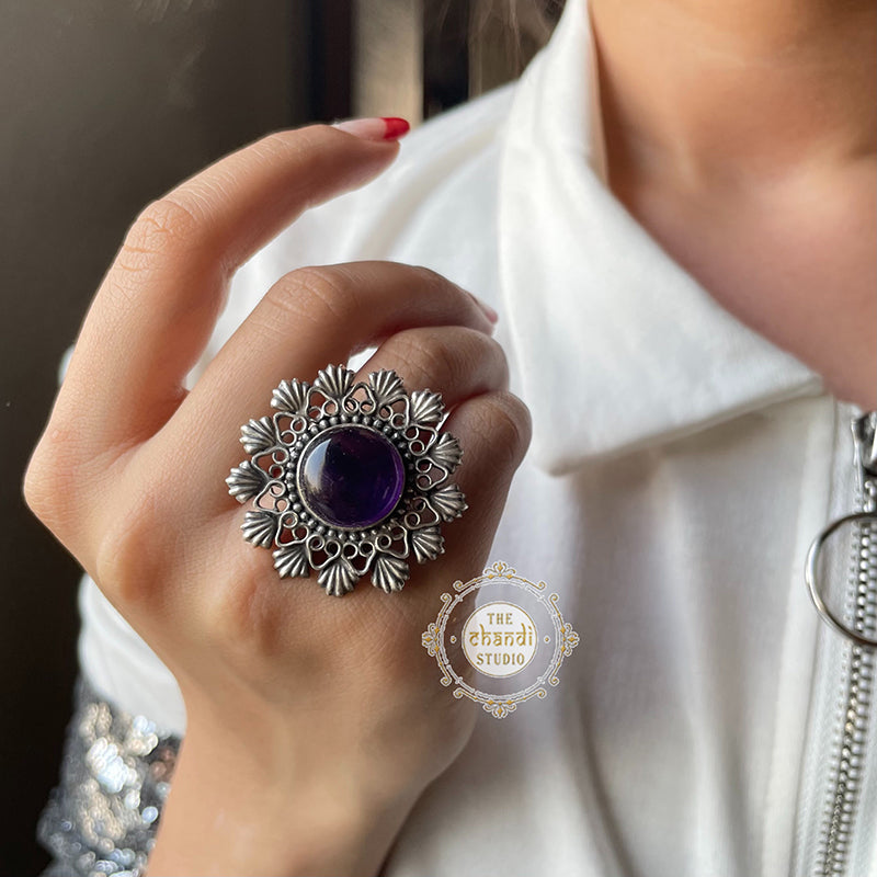 Channel soothing energy all day while reveling in the beautiful design of this Amethyst Ring. SIZE ADJUSTABLE