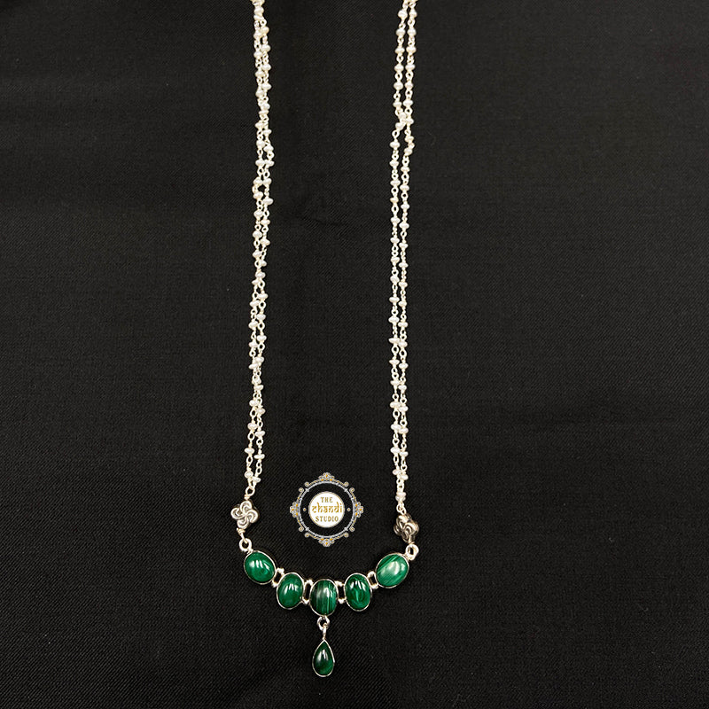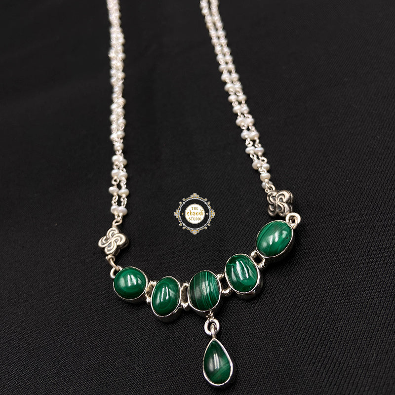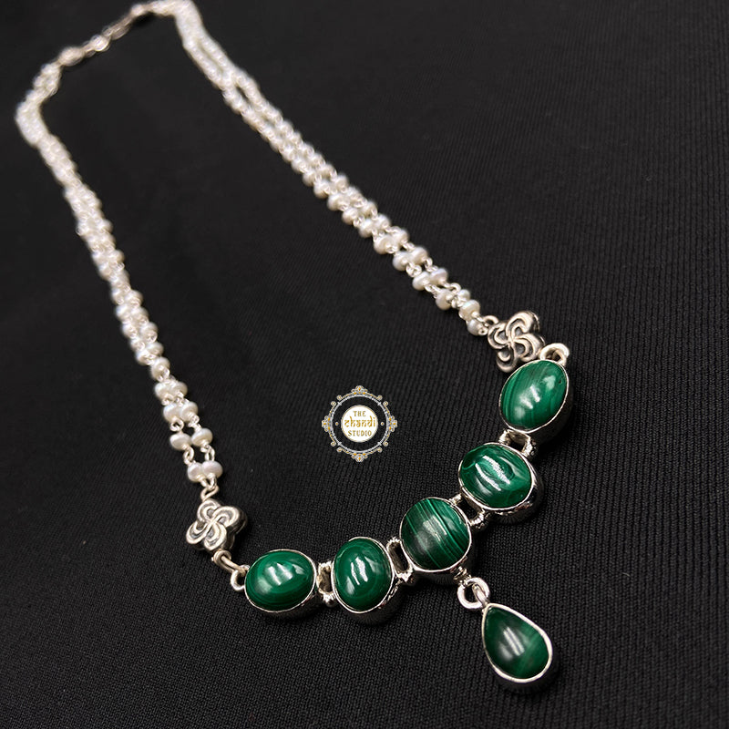 A delicate Malachite necklace with freshwater pearls that you'll never want to take off.. YESS! Because it's minimal, lightweight & breezy for everyday comfort :) MATERIAL - STERLING SILVER 92.5 LENGTH - 22 inches