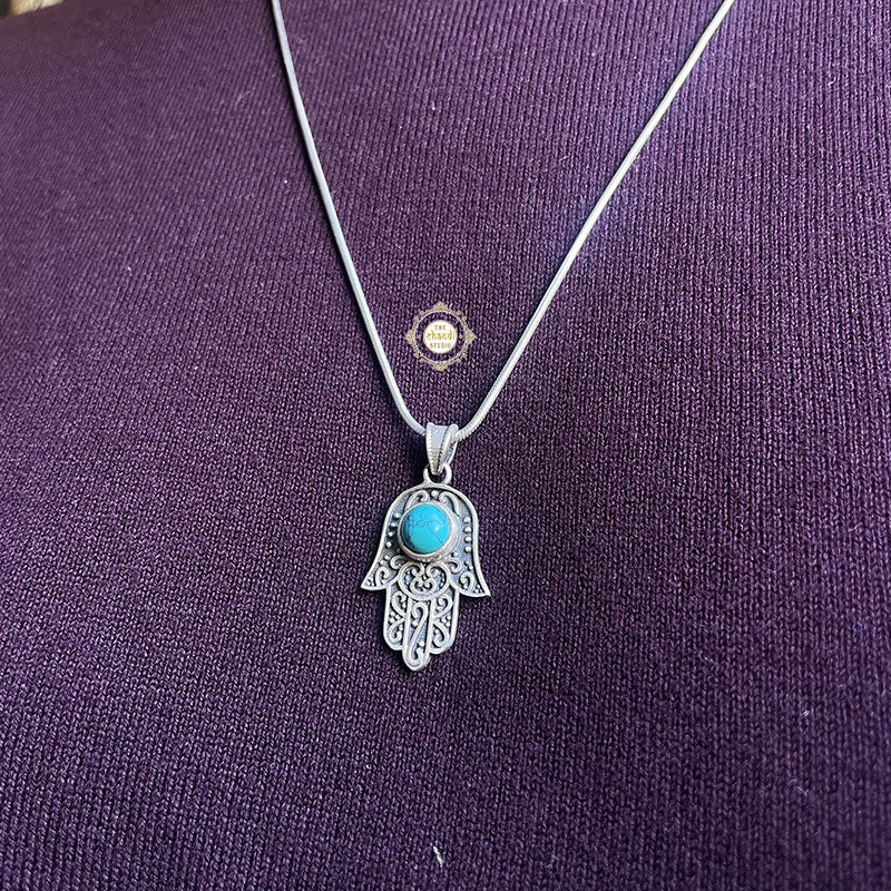 Give yourself or your loved ones the gift of positivity with this easy-to-wear Hamsa Hand pendant, a talisman that is believed to protect the wearer from harm against the evil forces & bring goodness, abundance, fertility, luck & good health. A lovely mystical motif full of symbolism & originality with the added benefit of it's protective qualities :) Length - 3 cm Width - 1.7 cm Price mentioned are only for Pendant Material - Sterling Silver 92.5% *Price mentioned is only for the pendant.