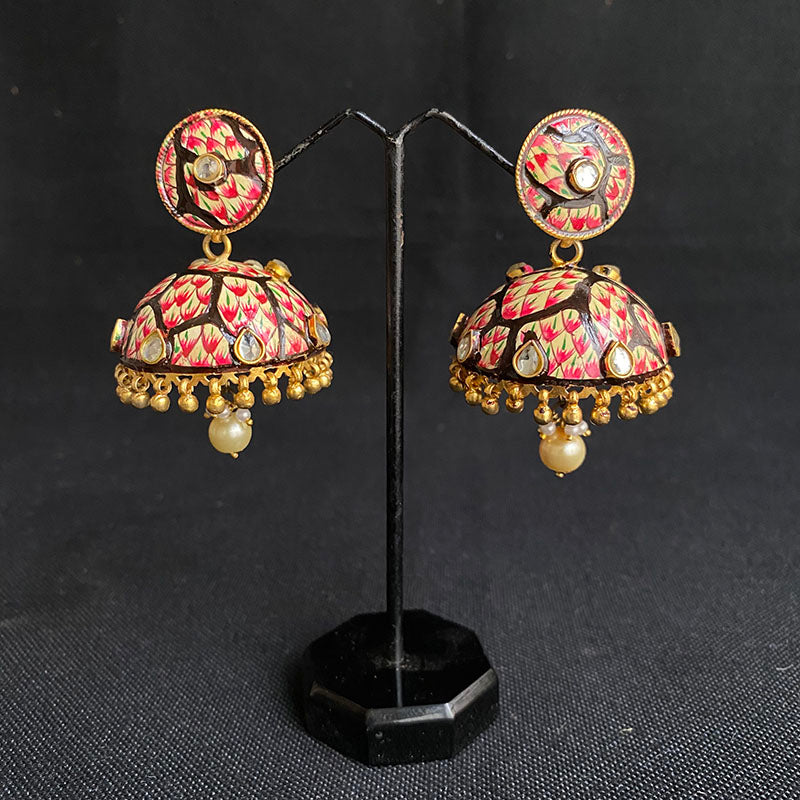 "RANG RASIYA" , the HANDPAINTED BEAUTY. Each pair is one of a kind and handmade with special attention to details. Absolutely love how the Jadau work add that festive vibe to this bold Jhumka.