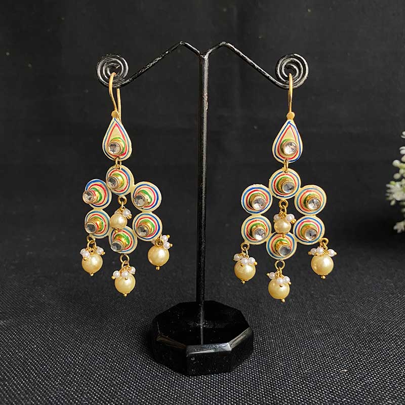 RANG RASIYA, the HANDPAINTED beauty! Delicately handpainted quirky earring with a detailed jadau work and pearls. Inspired by shapes, crafted with hand.
