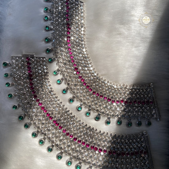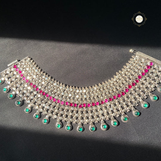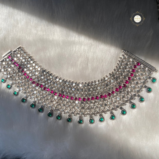 The Jashn Stone Anklet adds a touch of elegance with its vibrant stones, perfect for festive occasions. This anklet's intricate design enhances any outfit, making it a must-have accessory