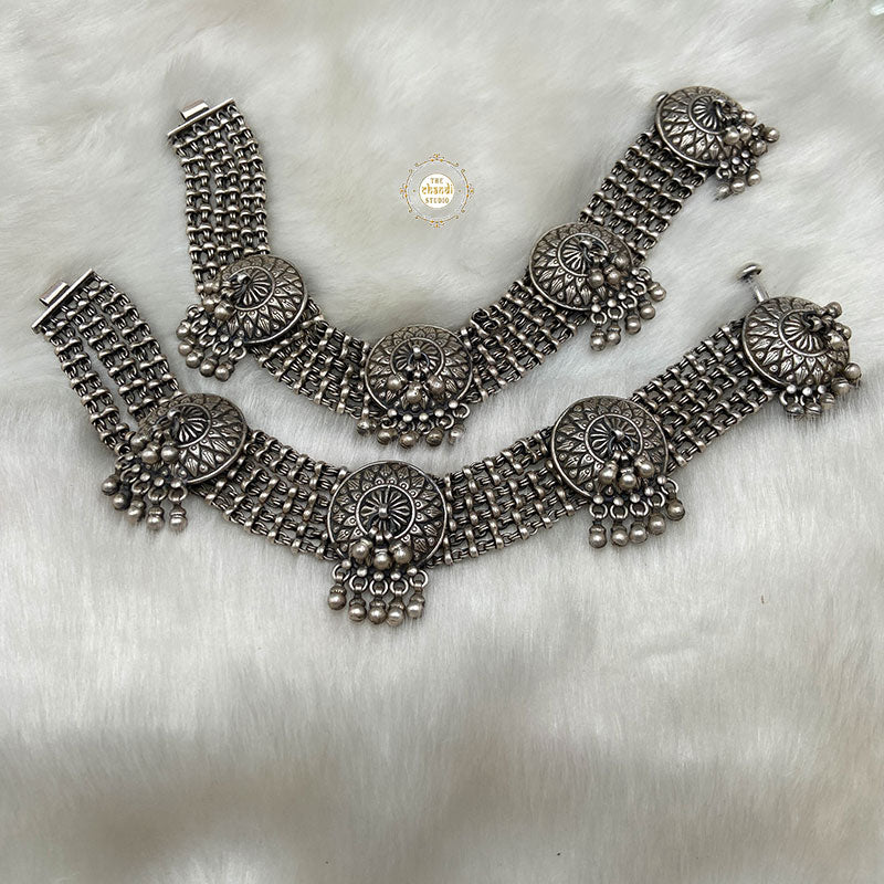 Leave behind a trail by wearing these stunning royal anklets as you are stepping into the festivities! Did anyone say fusion? This season, let us try the fusion look with choli, ripped jeans and these anklets with mojris. Jashn Warrior Ghungroo Anklet is made up of traditional ghungroo danglers and conventional braid-inspired design. It gives your feet some elegance and sophistication.