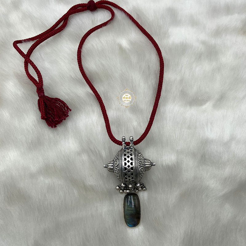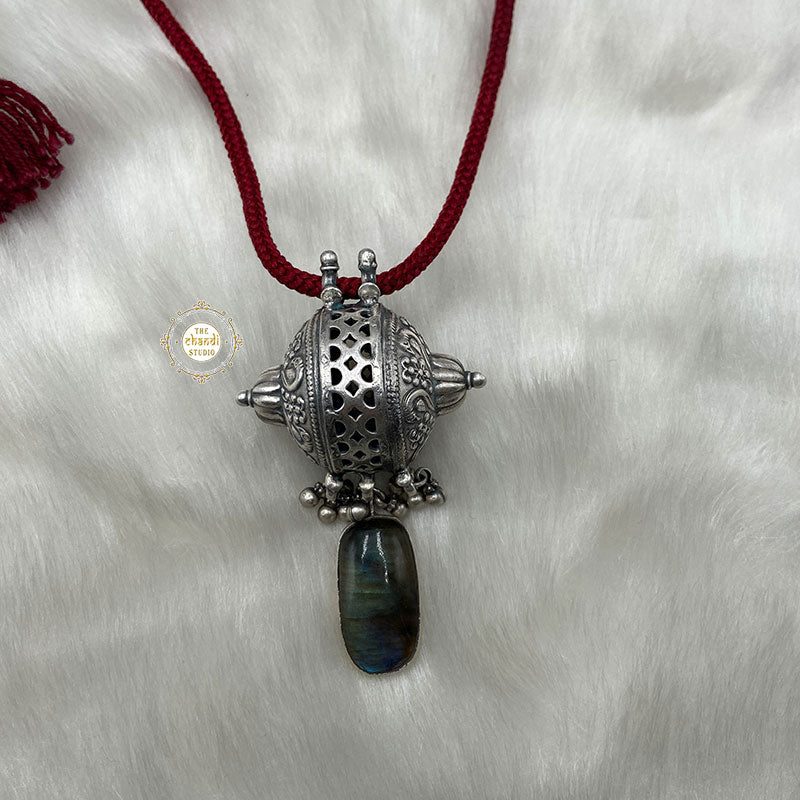 The Jharokha Taweez Ghungroo Necklace a unique and stunning piece of jewelry. The necklace features a pendant in the shape of a Jharokha with intricate carvings and designs. The necklace is also adorned with Ghungroo, which hang from the necklace and add a musical element to the piece. This necklace is worn with traditional Indian attire and is often seen as a symbol of tradition and culture.   MATERIAL : STERLING SILVER 92.5