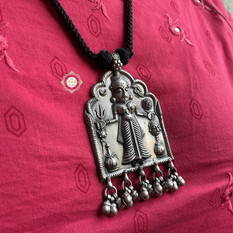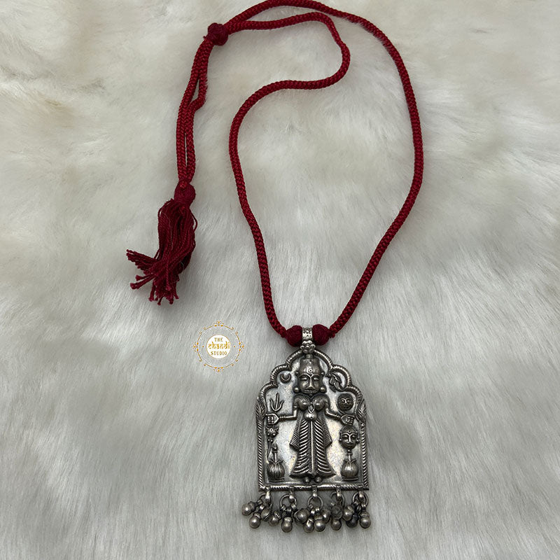 Jharokha thread necklace is a traditional piece of jewelry. It is made up of embossed design with "jharokhas" that are strung together on a thread. Jharokha thread necklaces are worn on special occasions or as part of traditional Indian attire.   MATERIAL : STERLING SILVER 92.5