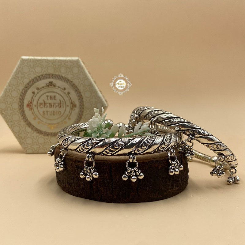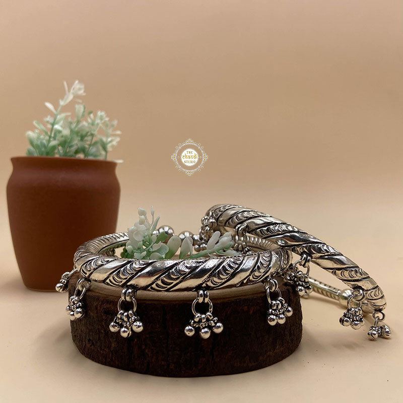 This Leg Kada Anklet reminds you of your grandmother running after you for feeding a morsel of rice. The melodic tinkling and jingling of this kada is reminiscent of the nostalgic days with your grandma's stories and memories. Pair it with embroidered long skirts and mulmul kurta sets and be the princess in your grandma's eyes. MATERIAL : STERLING SILVER 92.5