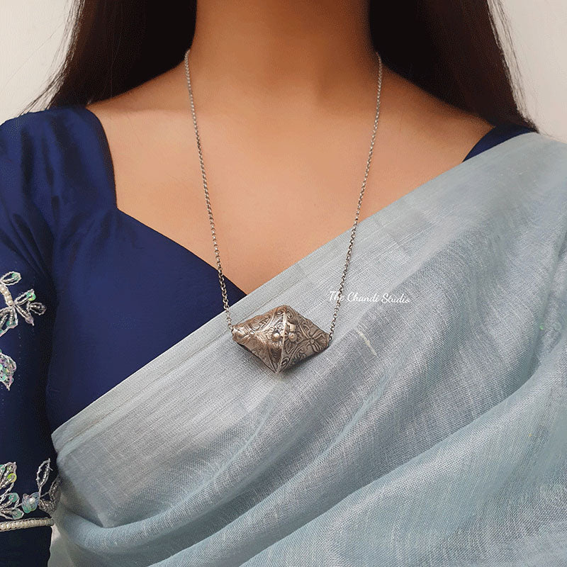 Choosing the best chains for pendants can be difficult but we believe that minimalistic fashion designs provide maximum elegance. A simple chain complements the conoid pendant better as it provides a clean, unfussy silhouette. Simply elegant or Elegantly simple - this is a piece for your Monday work days, Wednesday dinner dates, Friday brunch days, and Sunday family occasions. Lightweight Conoid Necklace is your weapon to slay any look! LENGTH - 24 inches MATERIAL - STERLING SILVER 92.5