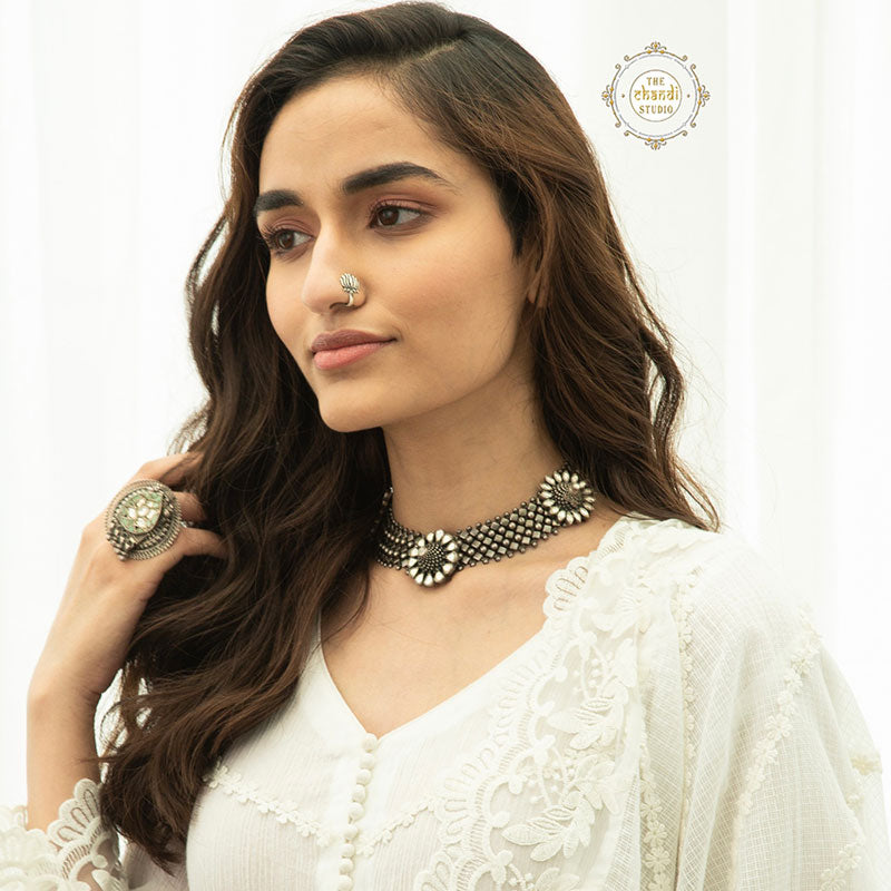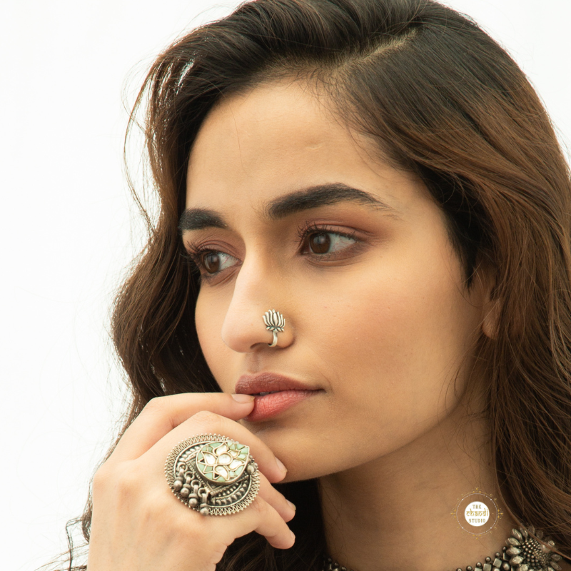 A symbol of purity, the Lotus is said to be an example of divine beauty. This makes a beautiful accompaniment to any western or ethnic outfit.
