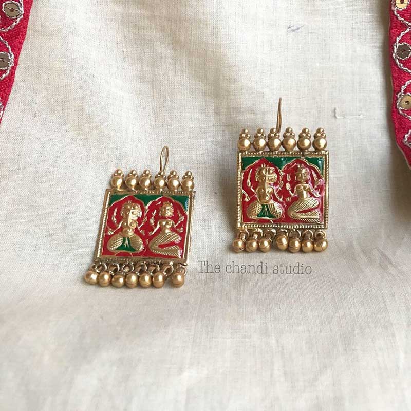 Irresistible alert! The meenakari chokers are only ascending the trend chart. A piece with two of the most traditional colors of all time. Length (earrings) - 5.4 cm *Price mentioned includes both, the necklace as well as the earrings.