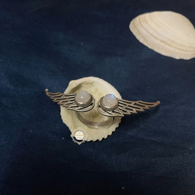 Spread your wings and fly! This dainty sterling silver ring featuring a graceful pair of wings serves as an ideal reminder to pursue your dreams. SIZE : ADJUSTABLE