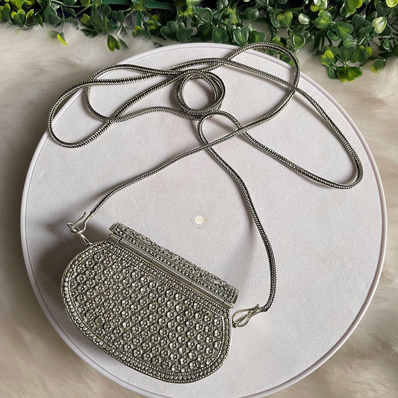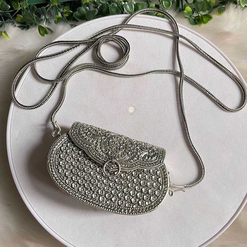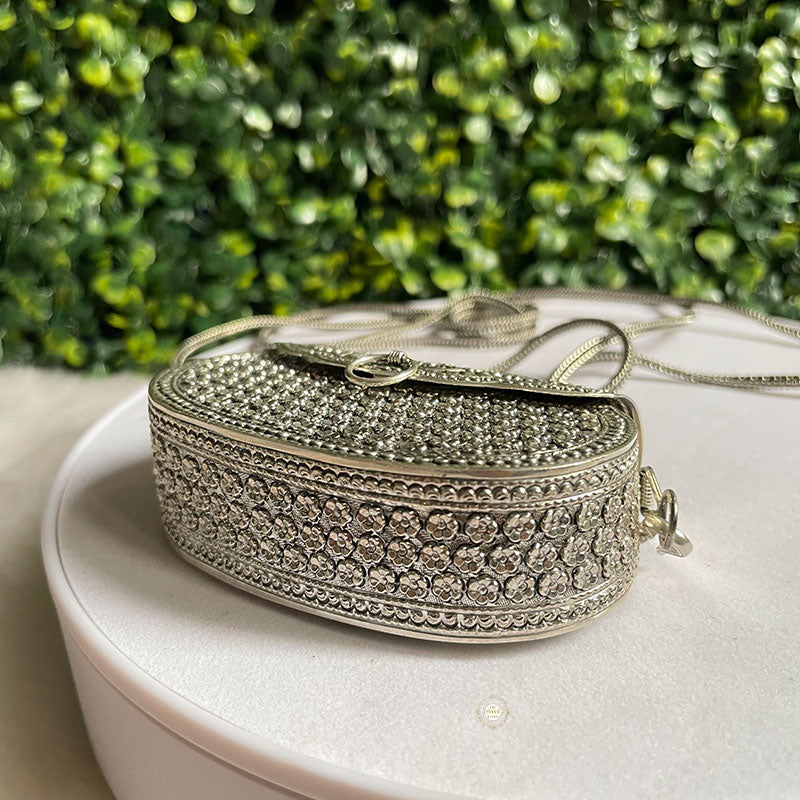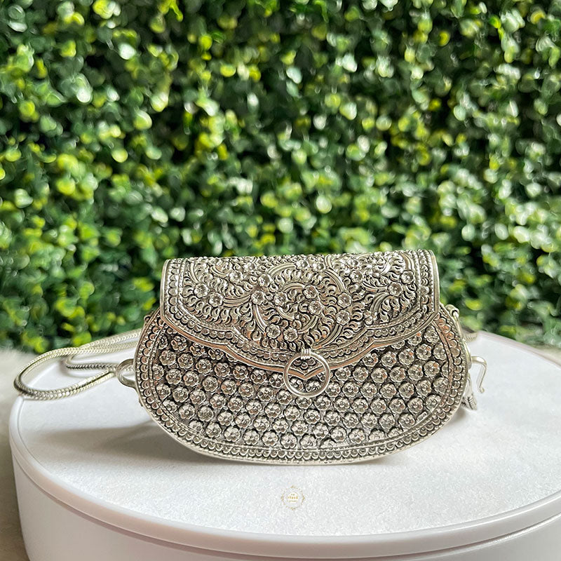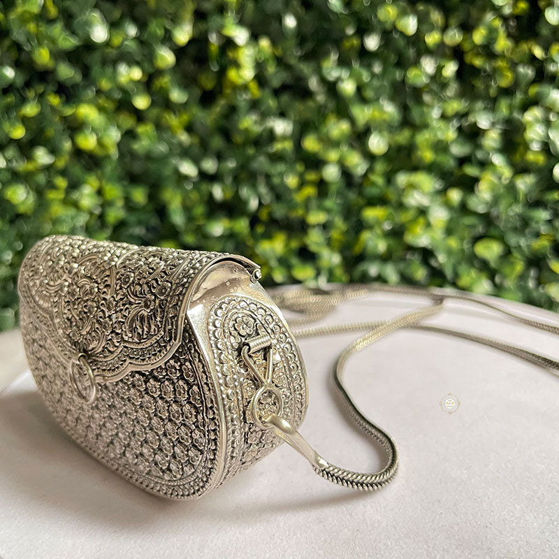 Introducing the Mini Jharokha Purse, a charming and unique accessory that captures the essence of traditional architecture in a modern way. This purse features intricate jharokha-inspired embellishments, adding a touch of cultural richness to your ensemble.