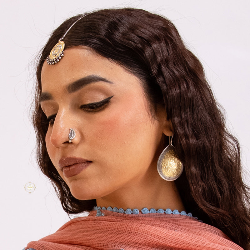 A subtle statement on it's own. Handcrafted miniature leaf in perfect natural detail is the star of this delicate nose pin! This makes a beautiful accompaniment to any western or ethnic outfit.