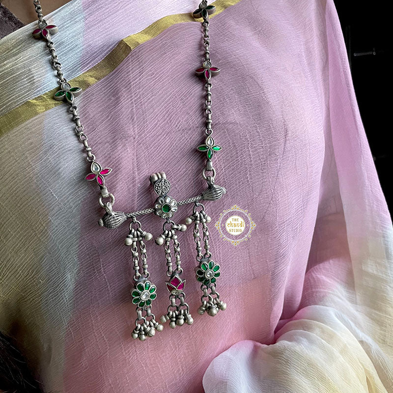 MATERIAL : STERLING SILVER 92.5 Length of necklace excluding links : 21 inches Additional links : 4 inches Width : 3 inches