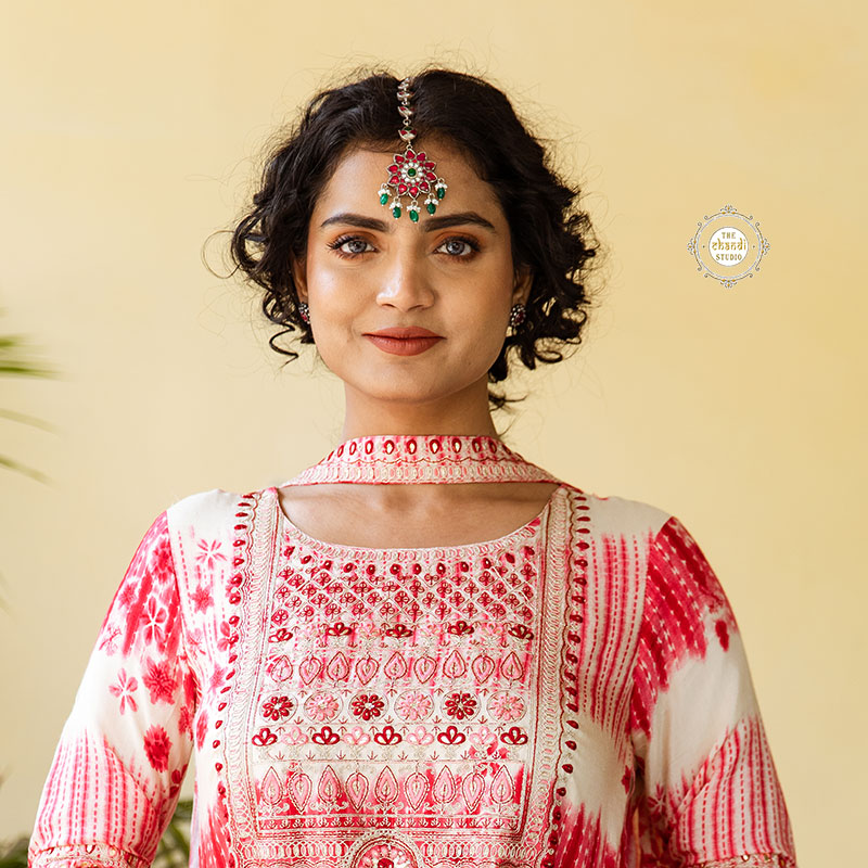 In the world of pair of earrings and pair of bangles, be the confident Maangtika, who loves herself and can face the battles alone. The Maangtika gives the bride power, will and wisdom to handle her new journey in life. This Maangtika is the key element to any great ethnic look. This tika is bound to elevate your traditional and Indo-western outfits. LENGTH :  7.5 inches WIDTH :  1.25 inches MATERIAL : STERLING SILVER 92.5