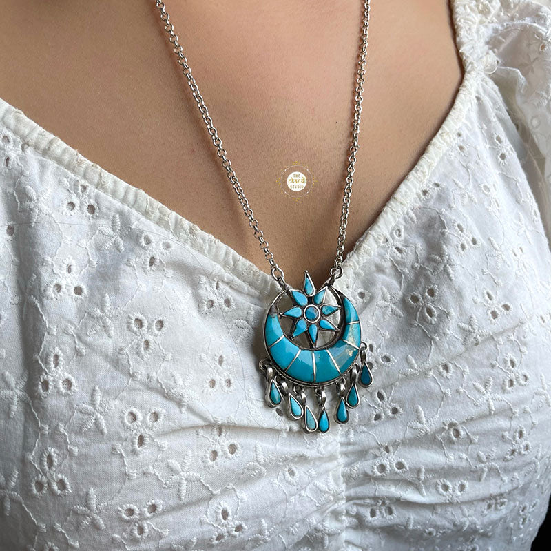 Introducing our breathtaking Natural Stone Chaand Sitaara Necklace, a celestial-inspired masterpiece that embodies the timeless allure of the night sky. Crafted with exquisite detail and adorned with genuine natural stones, this necklace captures the essence of celestial beauty and elegance.