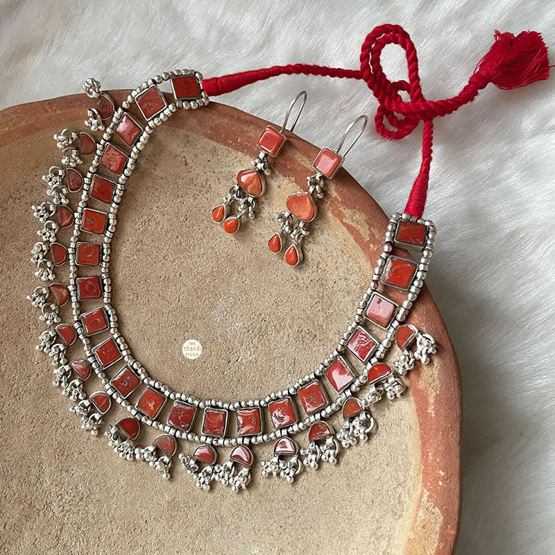 The Natural Stone Twilight Ghungroo Necklace Set is more than just a piece of jewelry; it's a symbol of grace and empowerment. Wear it as a standalone statement piece to command attention, or layer it with other necklaces for a bohemian-inspired look that's uniquely yours.