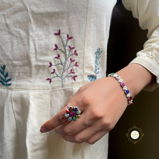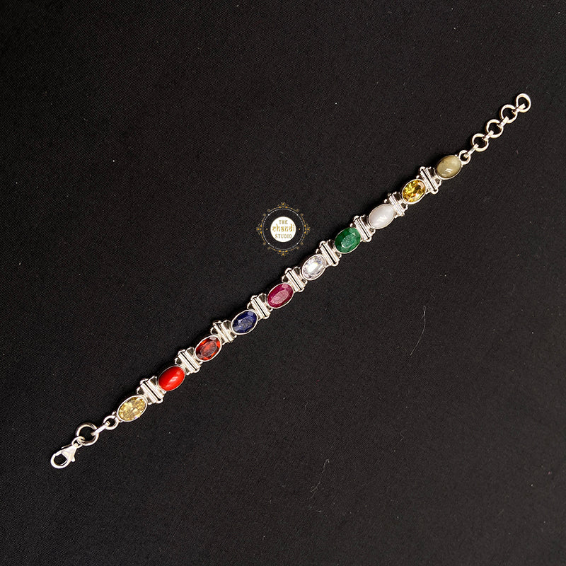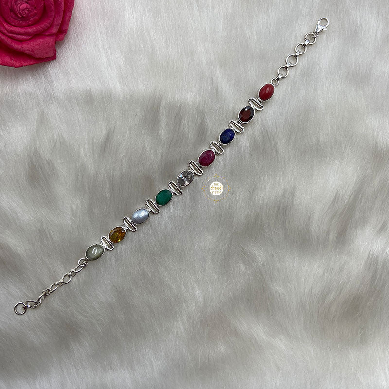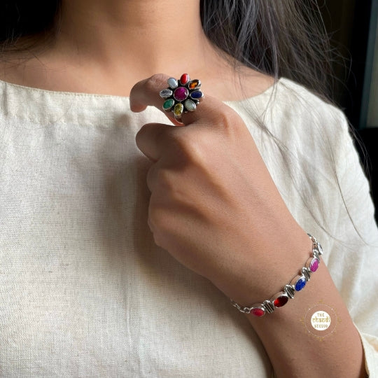 Beautiful Navratna Silver Bracelet! Very delicate and will pair beautifully with both Western and Indian wear