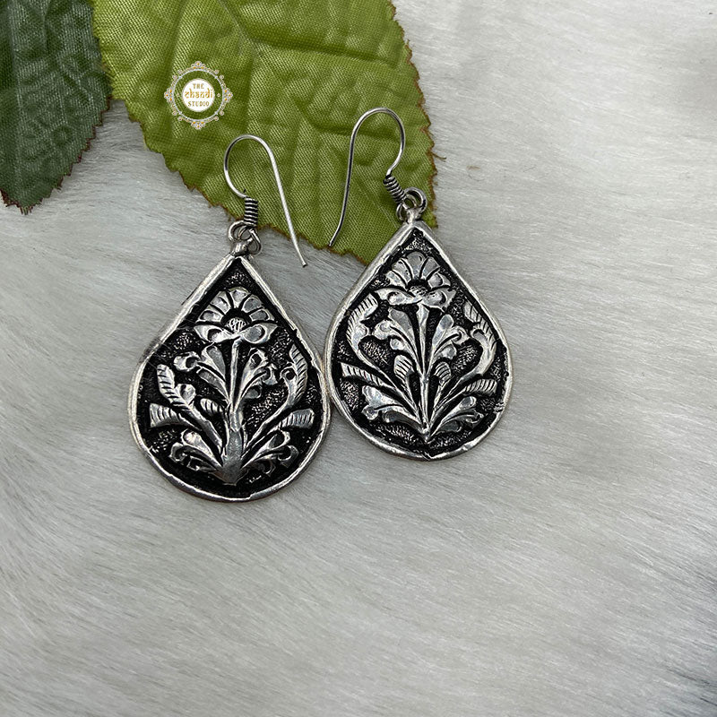 Exude the brilliance of old world charm with this finely crafted earring with intricate traditional chitai art. Nazaakat Chitai Earrings are a type of traditional Indian jewelry. Nazaakat Chitai Earrings are a popular choice for traditional Indian attire, such as sarees and lehengas. They are also worn during special occasions, such as weddings and festivals.   Material : Sterling Silver 92.5%